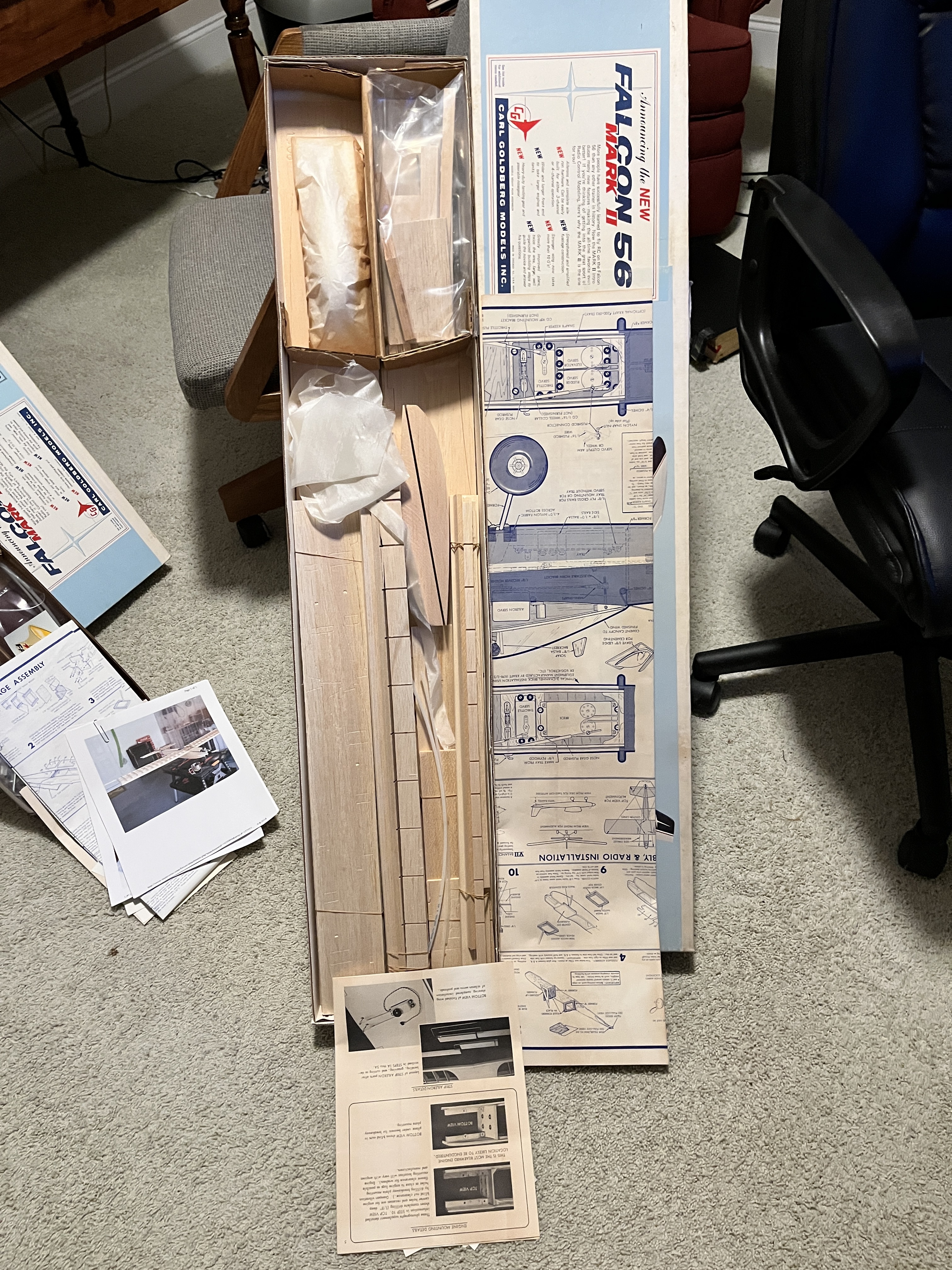 I have 2 Carl Goldberg falcon 56 mark ll kits for sale. I got them off of ebay several years ago with the intention of building them but never did. Selling “as is” the kits look complete but I can’t guarante them